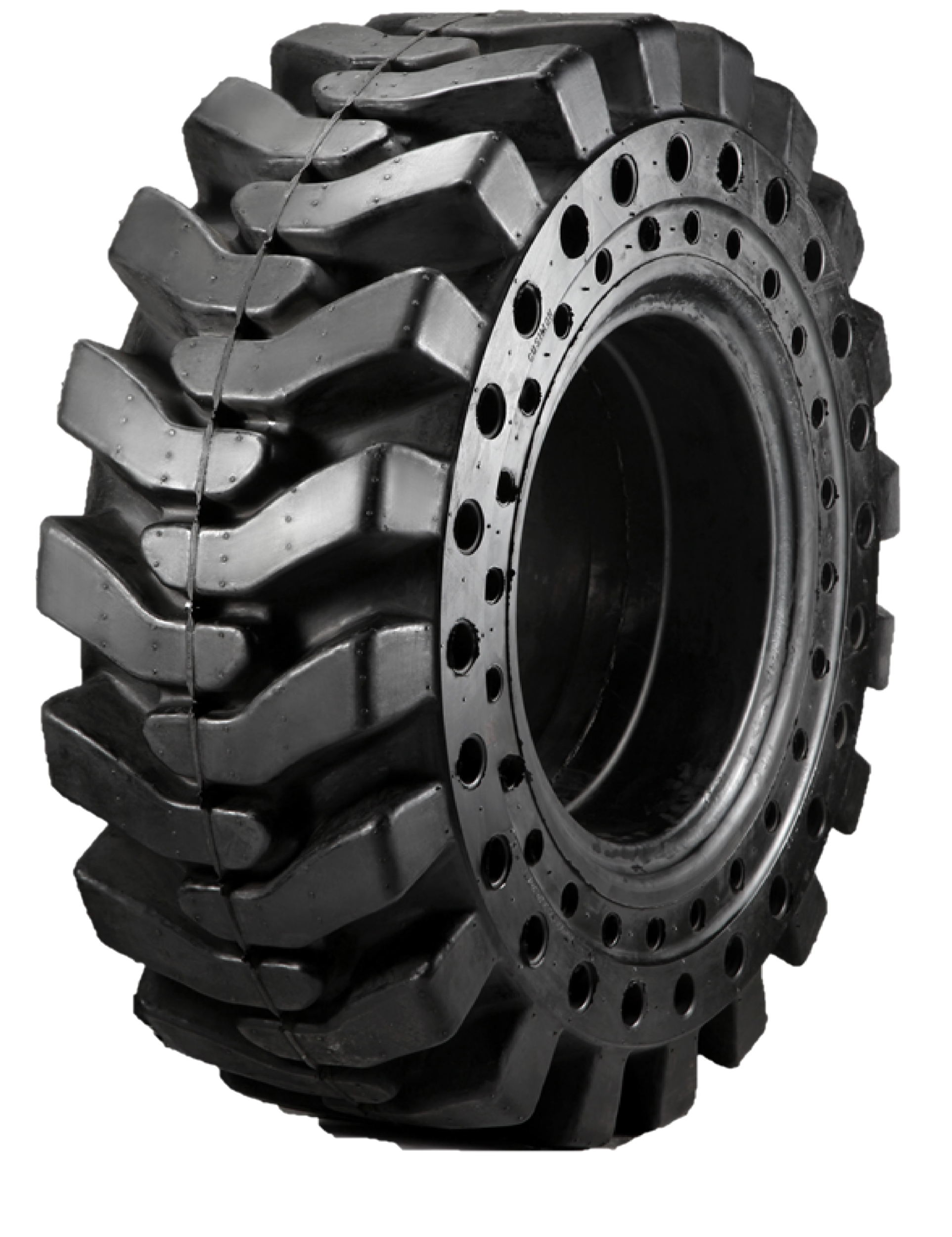R4(Apertures) tread pattern tires, with the big tractive lugs and wider contact area, are versatile and known as the ATU (All Traction Utility). Featuring the improved rubber compound for greater resistance to cutting and the sidewall apertures designed for heat dissipation and softer ride equivalent to the foam filled pneumatic tire, our R4(A) tires have the ability to absorb considerable punishment from the tough terrain effortlessly and they are perfect suitable for wheel loaders, skid steers, telehandlers, reach stackers, material handlers, backhoe, mining machines and other industrial vehicles.